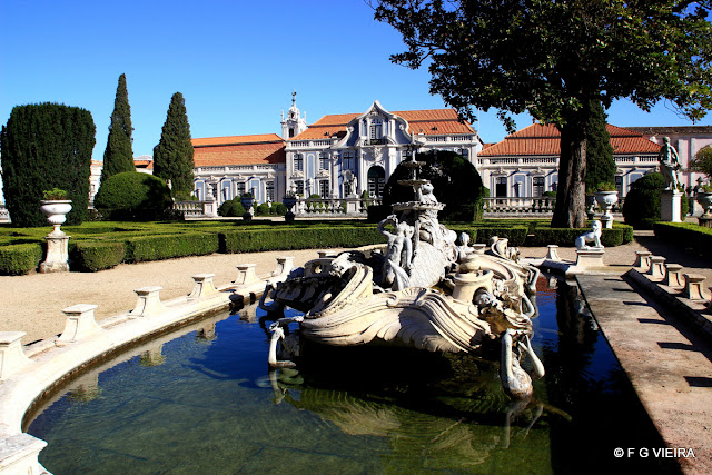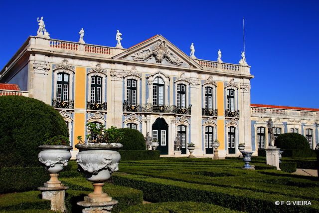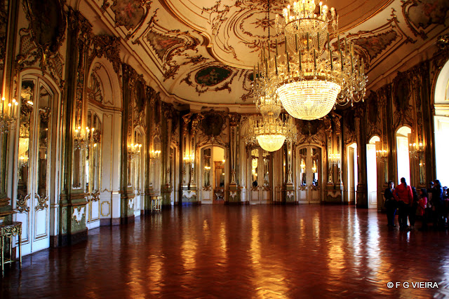 Desta vez a visita foi ao Palácio de Queluz, há muito agendada, calhou agora a vez deste magnifico Palácio, apenas vou mostrar umas resumidas imagens deste monumento, pois o interessante é mesmo lá ir. Saliento que quase tudo é belo, dos jardins aos azulejos passando pelas esculturas que estão por todo o lado, as mobilias de diversos estilos, a sala do trono, da musica, oa pavilhão de D. Maria, a sala dos embaixadores, enfim um nunca acabar para quem aprecia e gosta de história e de monumentos. Aconselho a visita. Algumas (poucas) imagens.